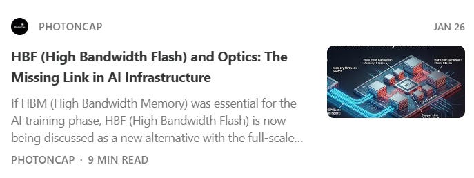 It turns out the catalyst was my piece “HBF (High Bandwidth Flash) and Optics: The Missing Link in AI Infrastructure.”