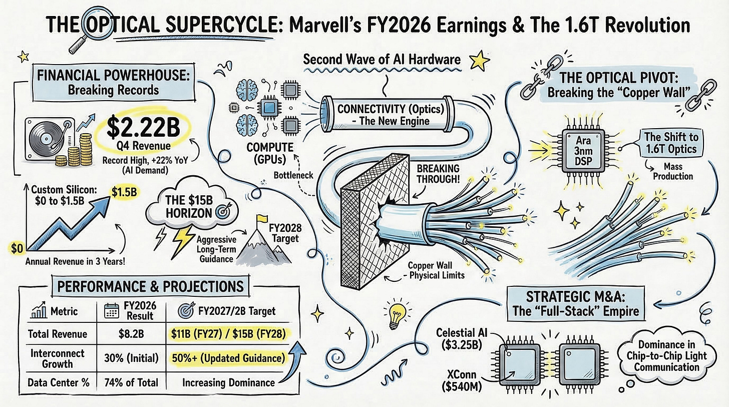 Copper Wall, Age of Light — Dissecting Marvell's FY2026 & the 1.6T Optics Chain