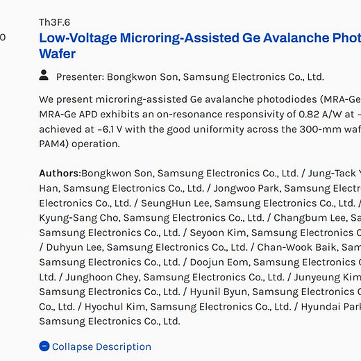 Intel: Li, Kejia, et al. “Intel 300mm Heterogeneously Integrated Silicon Photonics Technology: A Review of Recent Progress.” Optical Fiber Communication Conference. Optica Publishing Group, 2025.