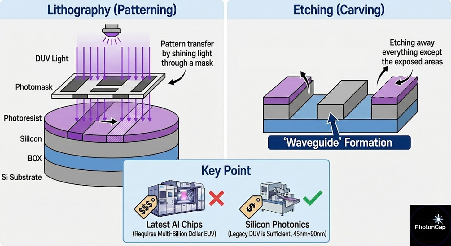 💡 Wait a moment: Why does Silicon Photonics use ‘Legacy Equipment’? Semiconductor investors are usually enthusiastic about fine processes like 3nm or 5nm. However, Silicon Photonics is sufficient with DUV lithography using 193nm (ArF) or 248nm (KrF) wavelengths.