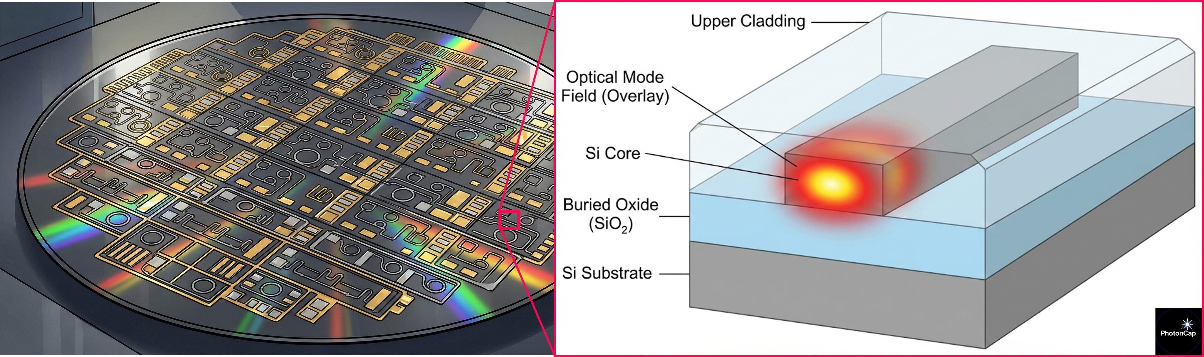 Overwhelming Refractive Index Difference (High Index Contrast): Traditional optical fibers have a refractive index difference of less than 1%, so their ability to confine light is weak. This necessitates a large volume. In contrast, SOI has a large difference between Silicon (~3.45) and Oxide (~1.44).
