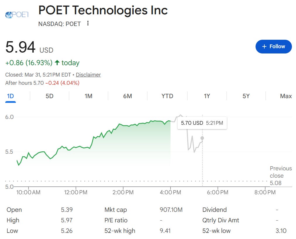 POET Technologies dropped its Q4 2025 results on March 31, and the market responded with a 16.93% surge to $5.94 at close. That reaction alone tells you the headline loss number wasn’t what investors were reading. On the surface, a $42.7M net loss against $341K in revenue looks brutal. But that framing misses the structure of this quarter entirely.