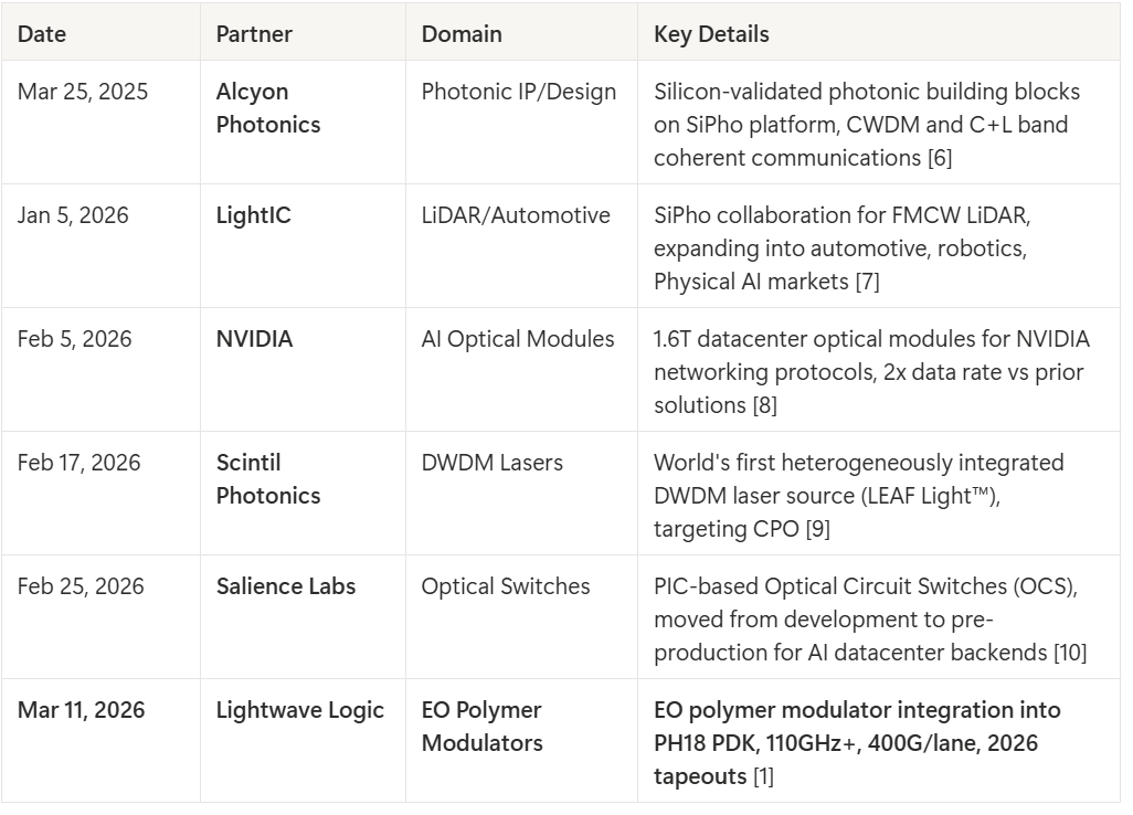 Mar 11, 2026: Tower Semiconductor development agreement for PH18 PDK integration [1]