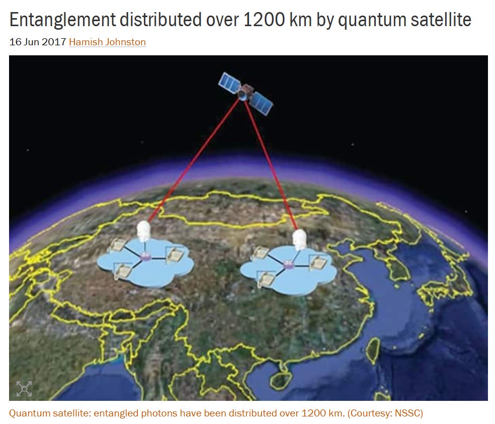 In August 2016, China launched the world’s first quantum science satellite, Micius.[18] Named after the ancient Chinese philosopher Mozi, the satellite successfully generated entangled photon pairs in orbit and transmitted them to two ground stations 1,200 km apart.[18]