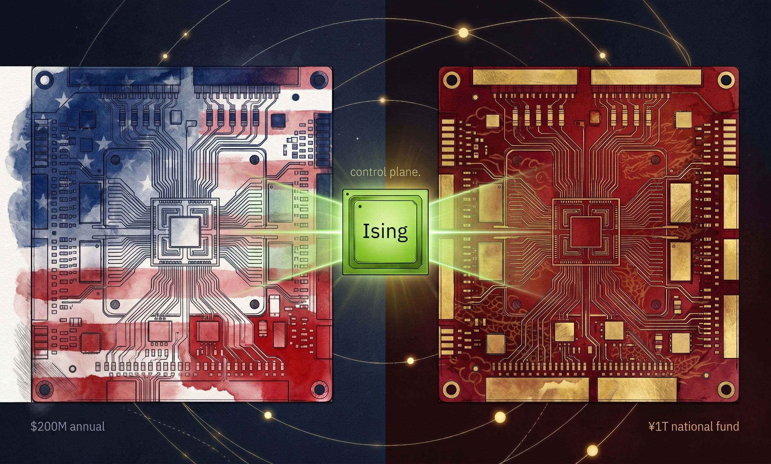 But the central claim of this article is not about the total dollars on either side. In both countries, the company that captures the control plane, not the qubit hardware, is positioned to monetize first. The reasoning for that claim, with the CUDA-Q / NVQLink / Ising stack broken down piece by piece, sits in the paid section below. First, the strategic structures on each side.